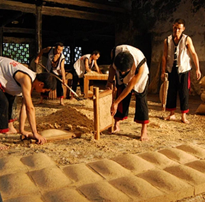 第一次在农历九月重阳节,称为“下沙”;第二次在下沙后一个月,称为“糙沙”。之所以分两次投料,是为了让当地特有的红缨子糯高粱能更好地适应后续的多次蒸煮...九次蒸煮